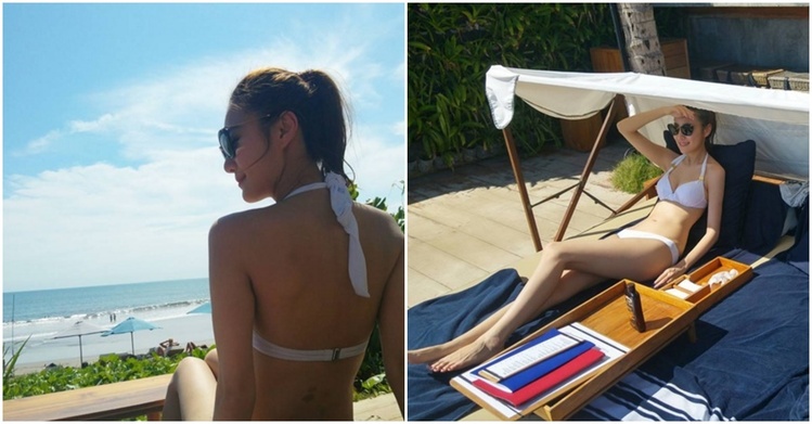 陽光沙灘比基尼!長腿正妹池畔曬好身材穠纖合度閃的我睜不開眼